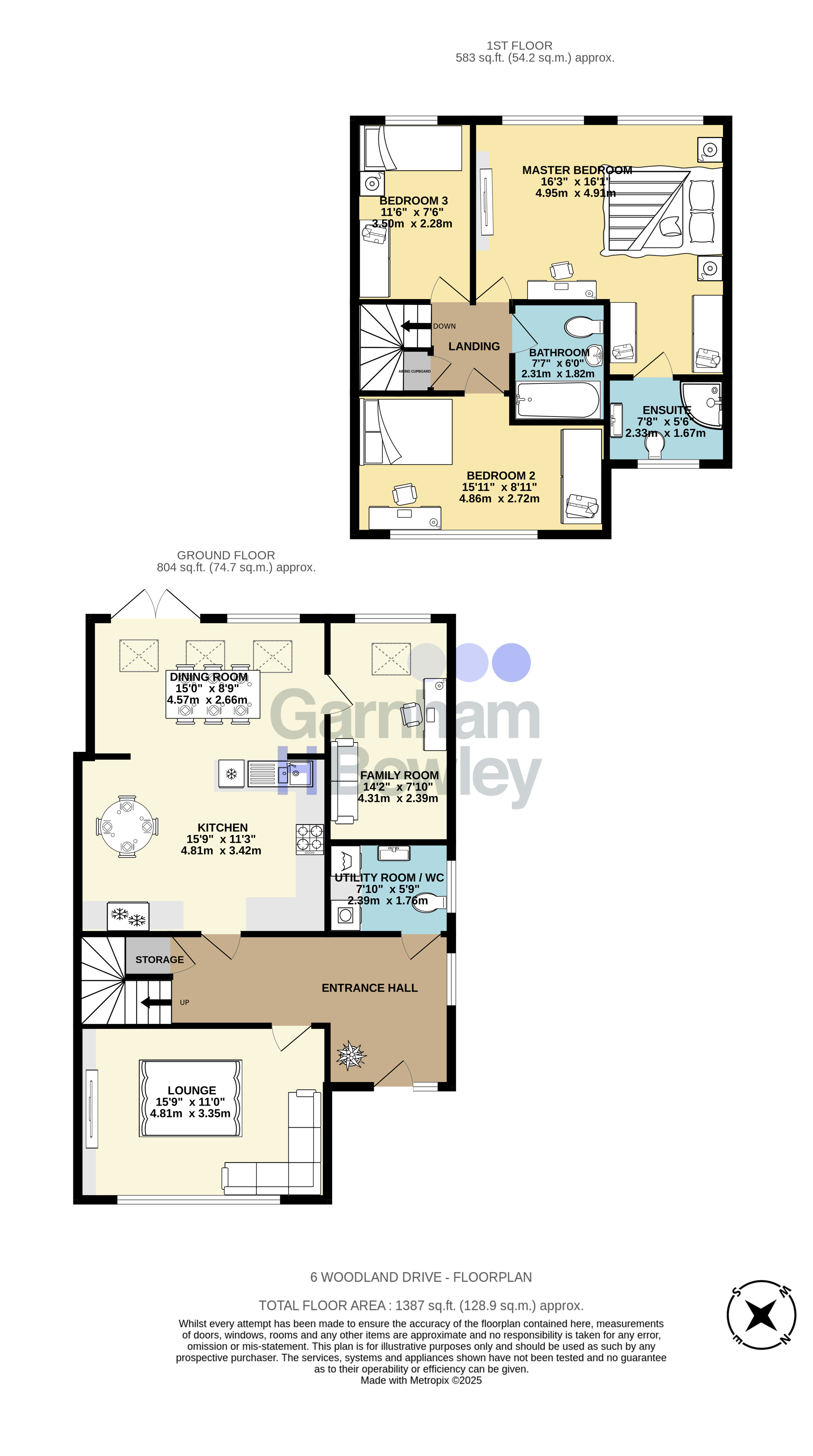 Upstairs are three well-proportioned double bedrooms. The extended master suite benefits from a dressing area and contemporary en-suite with corner shower, WC and basin. The family bathroom is finished to a high standard, and the boarded loft provides useful storage and houses the boiler.