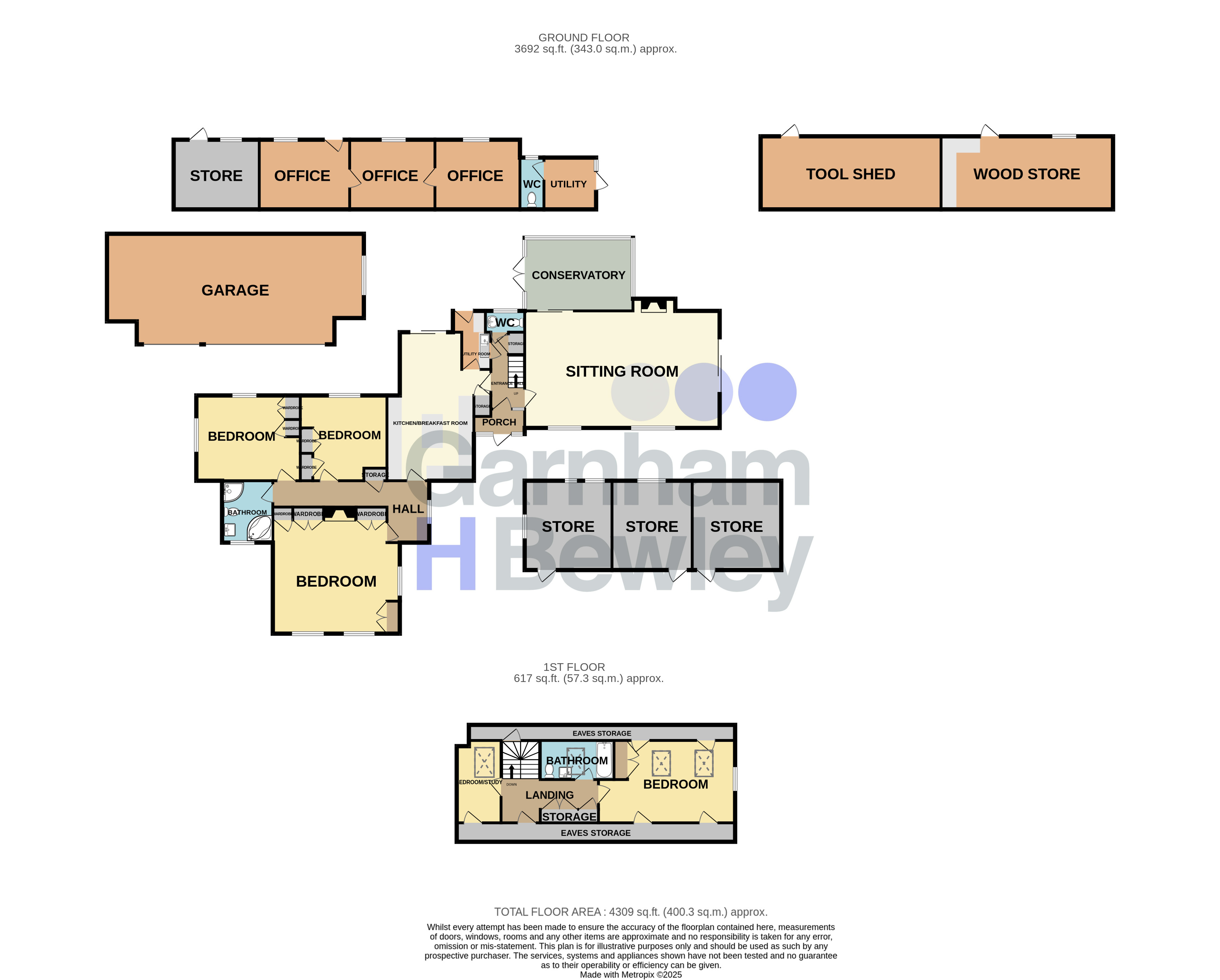 Outside Set within beautifully landscaped and secluded grounds approaching 4 acres, the property is accessed via a long private driveway which leads to a large parking area and a detached triple garage. The grounds are a true highlight, incorporating mature woodland, open lawns, and well-maintained gardens that create a picturesque and private environment. Outbuildings on the property include a brick-built office suite, various workshops and storerooms, an external WC, and a detached barn that may offer potential for conversion (subject to the necessary permissions). The expansive rear gardens feature sweeping lawns with far-reaching views across woodland, providing a peaceful, green outlook. Additional features include a natural pond, fruit trees, meadow areas, and a patio with a swimming pool—perfect for outdoor entertaining and summer relaxation.