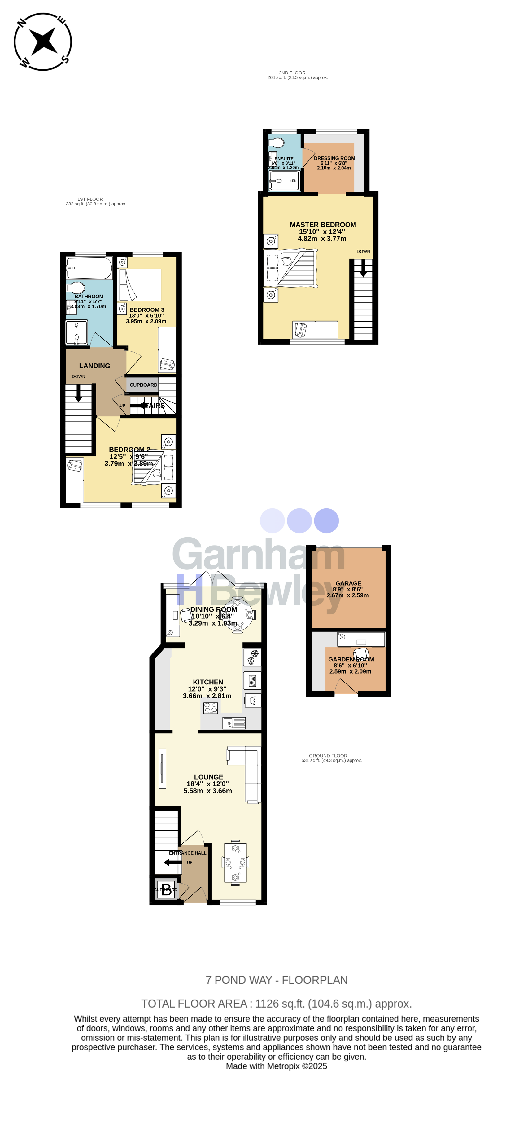 Outside, the rear garden is mainly laid to lawn with a patio area ideal for outdoor dining and relaxation. From the garden, you can access the rear of the garage, which has been partitioned to create a versatile garden room. The front section of the garage remains for storage.