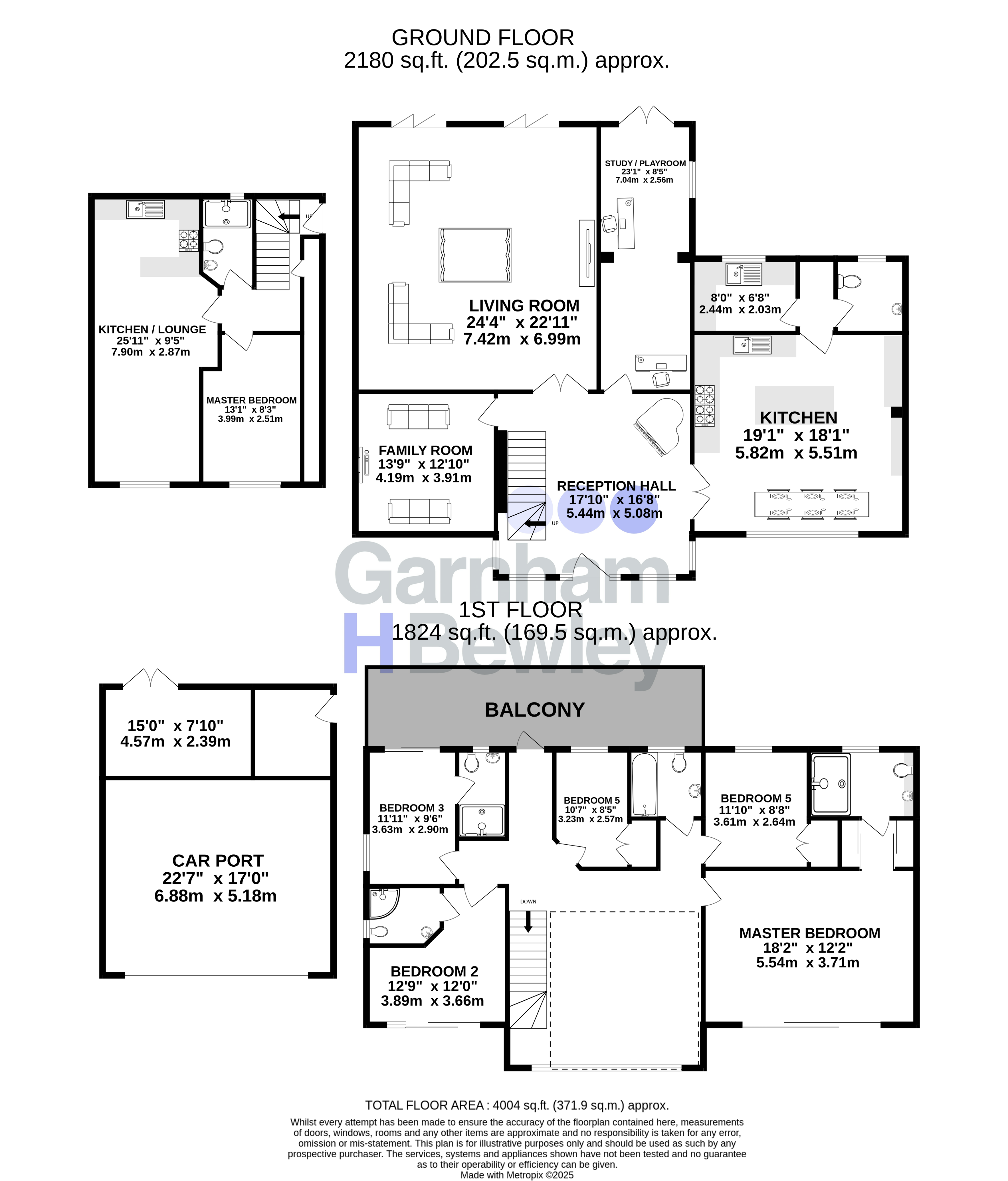 Upstairs, the principal suite is a standout feature—generously sized with a large front window enjoying far-reaching views, ample fitted wardrobes, and a luxurious en-suite wet room. Bedrooms two and three are both excellent doubles, each benefitting from their own stylish en-suite shower rooms. Bedrooms four and five are served by a modern family bathroom.