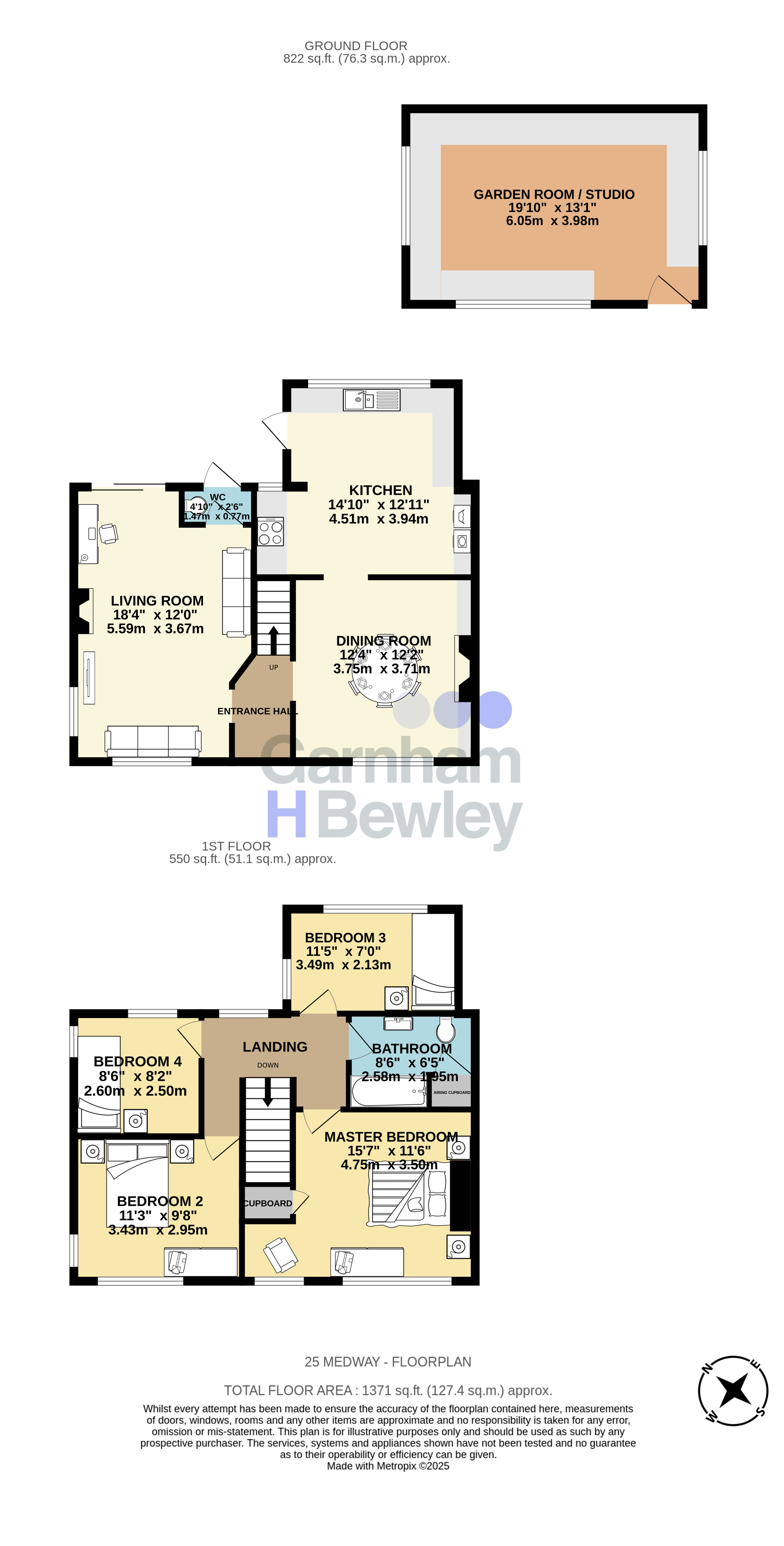Upstairs, there are four bedrooms—two good-sized doubles and two singles—offering flexibility for family living or home working. The refitted family bathroom includes an airing cupboard and complements the practical first-floor layout.