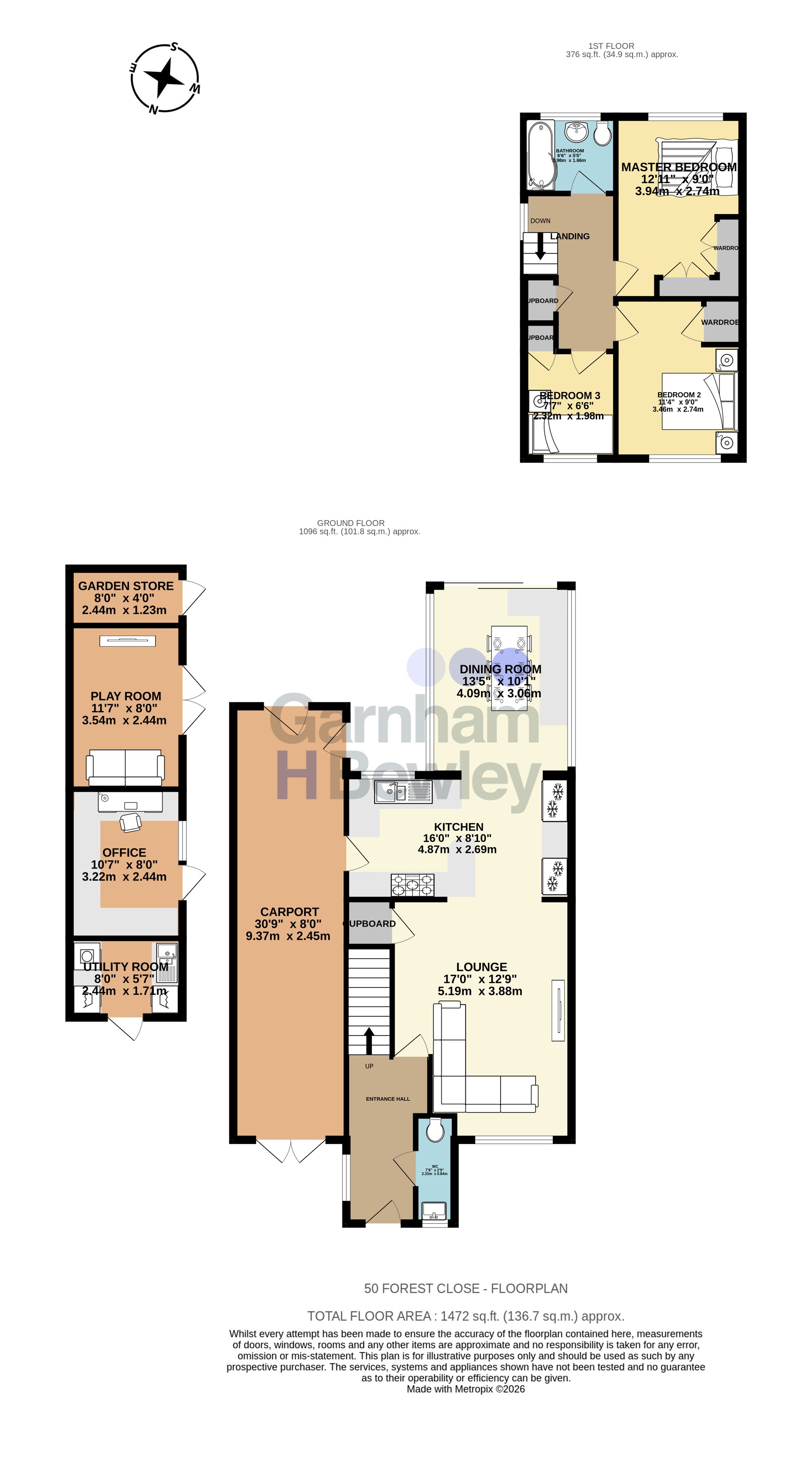 Externally, a large carport leads to a utility room with space for two washing machines, a tumble dryer, and an additional sink with worktop space. Beyond that, you’ll find a fully insulated and heated garden office, perfect for remote work, as well as a versatile playroom that can also serve as a gym. The low-maintenance garden completes this fantastic property.