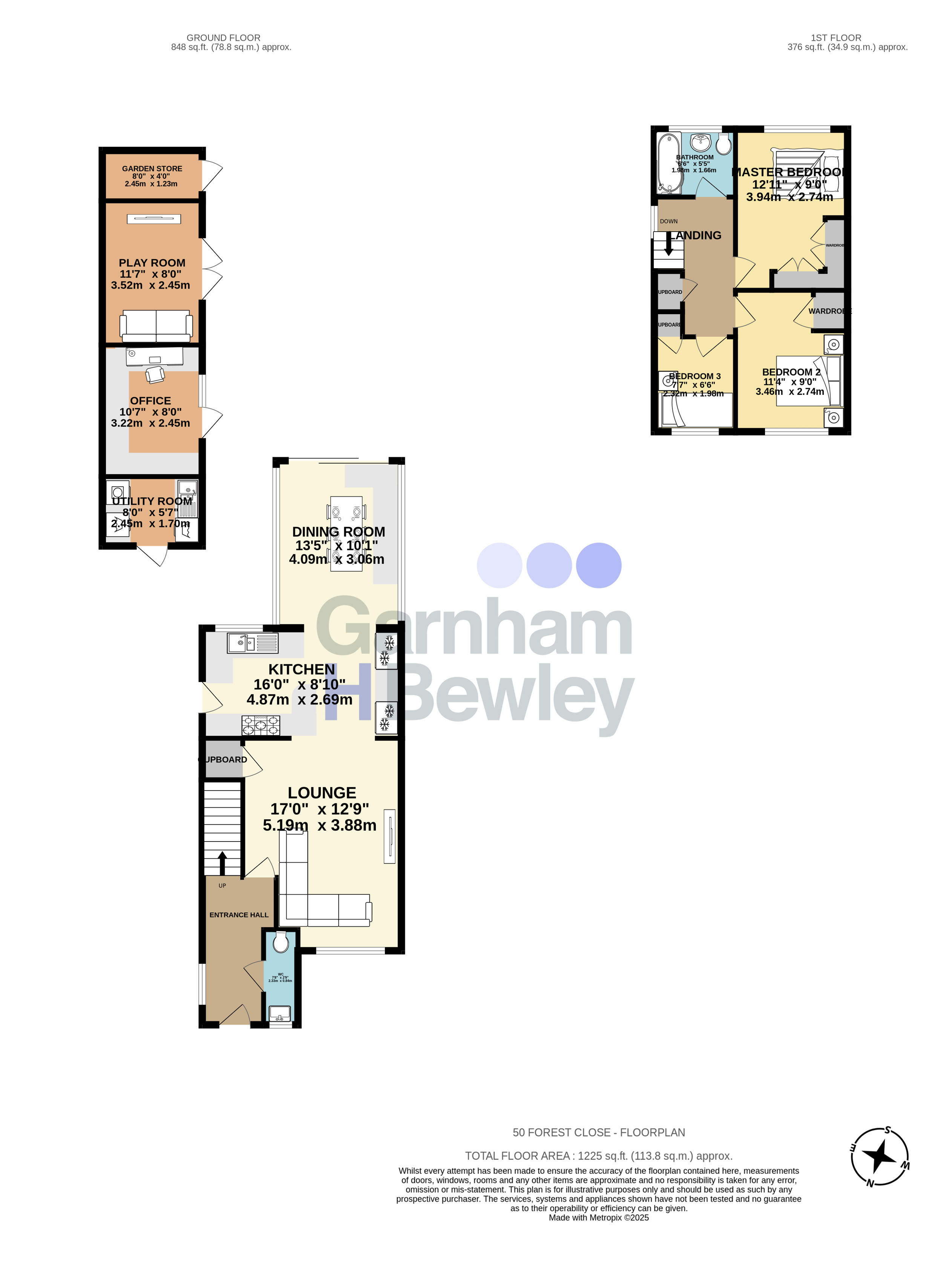 The dining room at the rear has been extended to provide ample space for entertaining. Upstairs, you’ll find two double bedrooms with built-in wardrobes, a versatile single bedroom that can serve as a study, and a fully boarded loft housing the boiler. The bathroom is in impeccable condition.