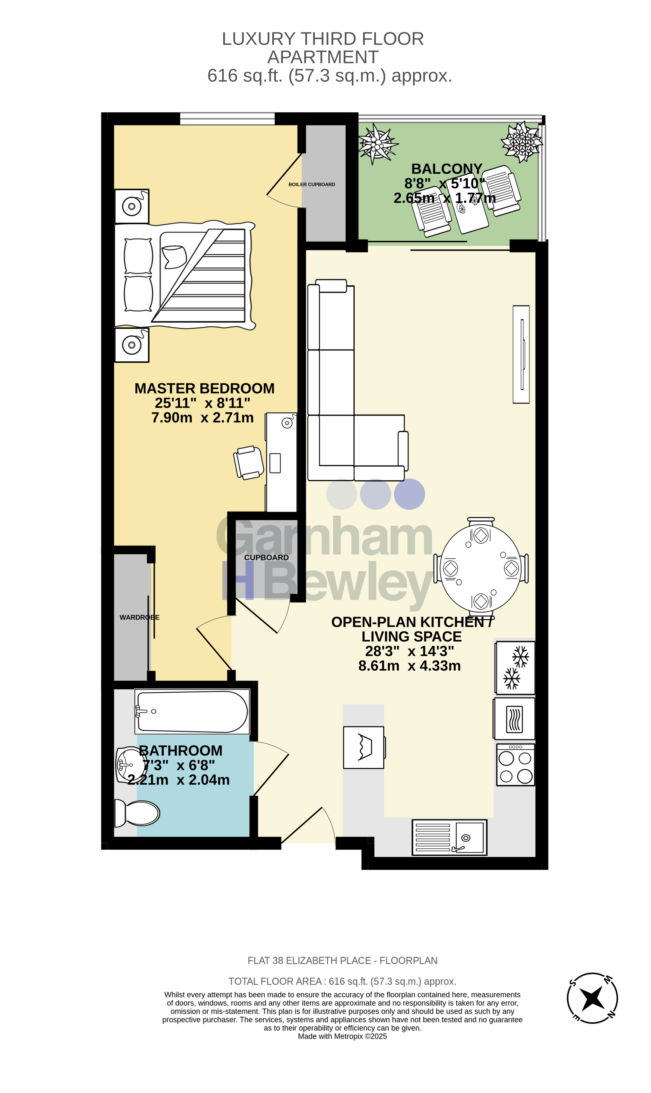 Externally, the apartment benefits from an allocated parking space located on the upper ground floor behind secure electric gates, with access to a cycle store and the beautifully maintained communal roof garden on the second floor — an ideal spot to relax or entertain. Elizabeth Place also provides peace of mind with a secure video entry system and two elevators serving all floors.