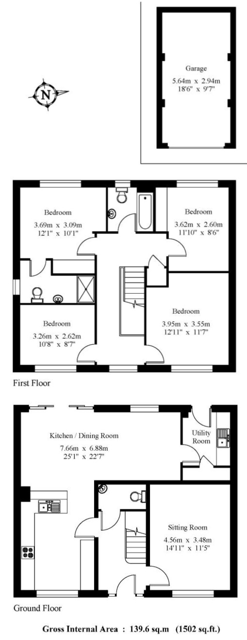 Upstairs, there is a bright and airy landing leading to the master bedroom which benefits from built-in wardrobes and a luxury en-suite shower room. There are three further double bedrooms, all well proportioned, served by a contemporary family bathroom. The windows have plantation shutters.