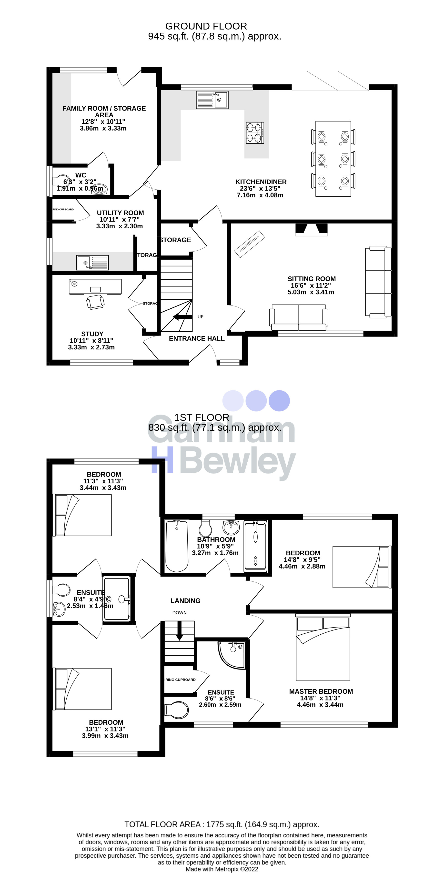 Garnham H Bewley are delighted to present to the market this exceptional four double bedroom detached family home, beautifully maintained and offered in excellent condition throughout. Situated in a sought-after residential location, the property boasts an impressive layout with spacious living areas, three modern bathrooms, a versatile study, a generous open-plan kitchen/family room, and the added benefit of solar panels, a large rear garden, and driveway parking for up to five vehicles.