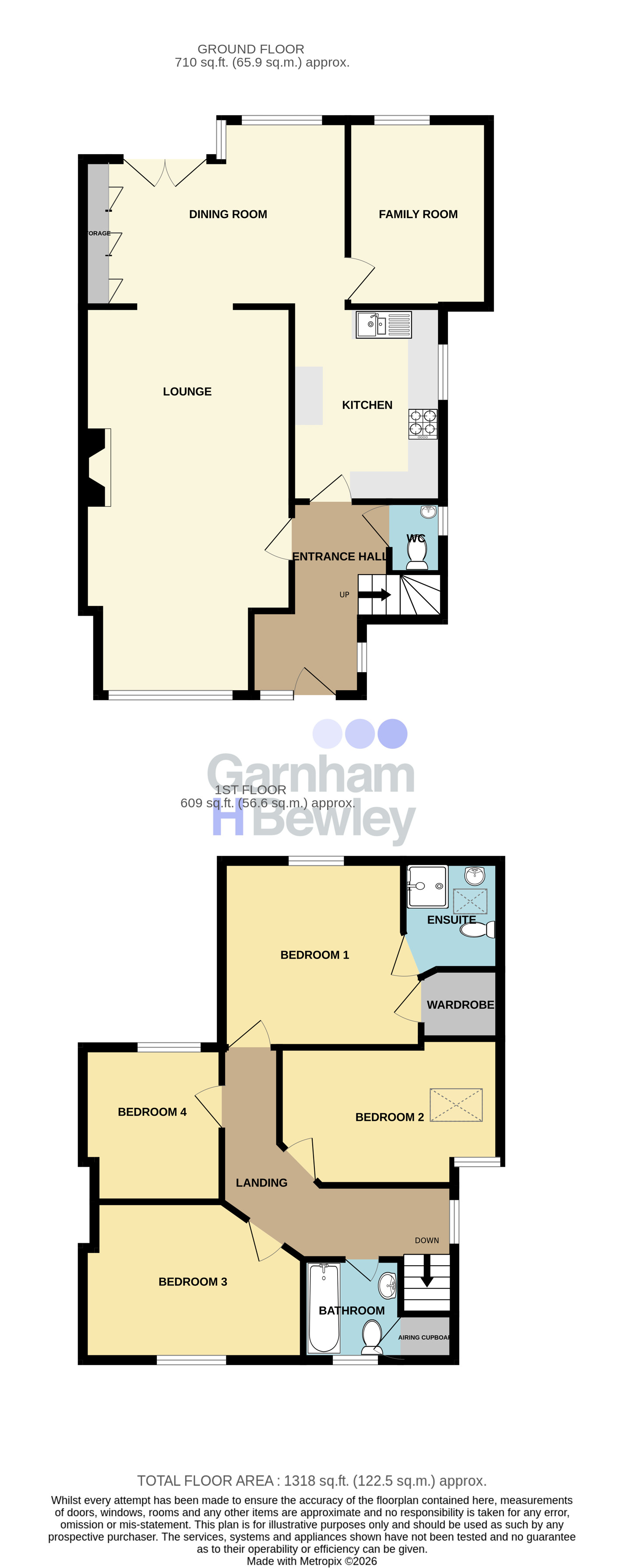 On the first floor, the landing leads to a generous main bedroom which enjoys views over the rear garden and benefits from an en-suite shower room and a large built-in wardrobe. There are three further well-proportioned bedrooms, all serviced by a family bathroom.