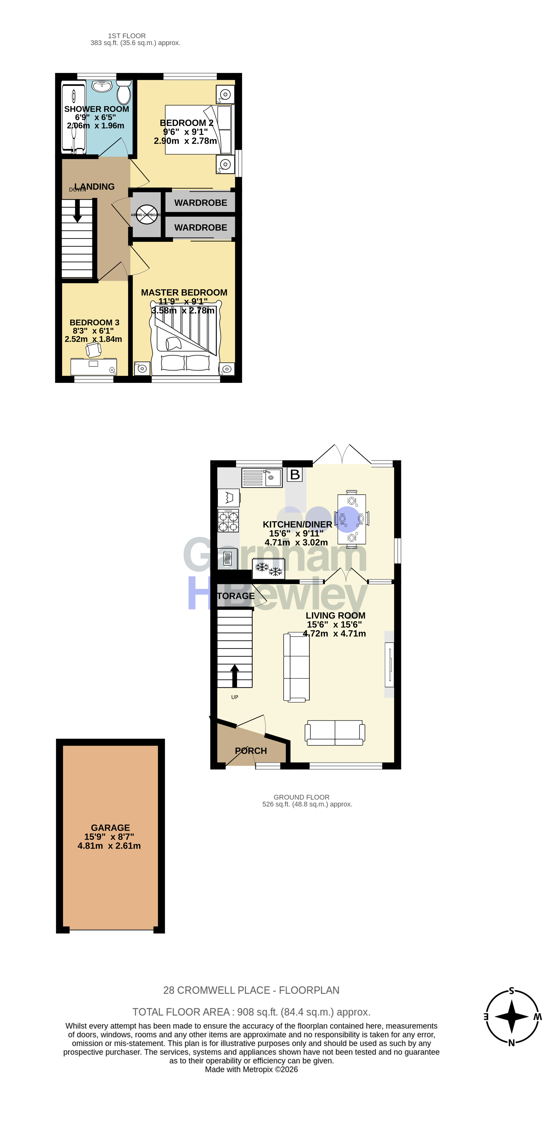 Upstairs, the first floor offers three well-proportioned bedrooms, including a spacious master with fitted wardrobes, a comfortable second double and a versatile third bedroom well suited as a home office, nursery or guest room. A modern shower room completes the accommodation, finished to a clean and contemporary standard.