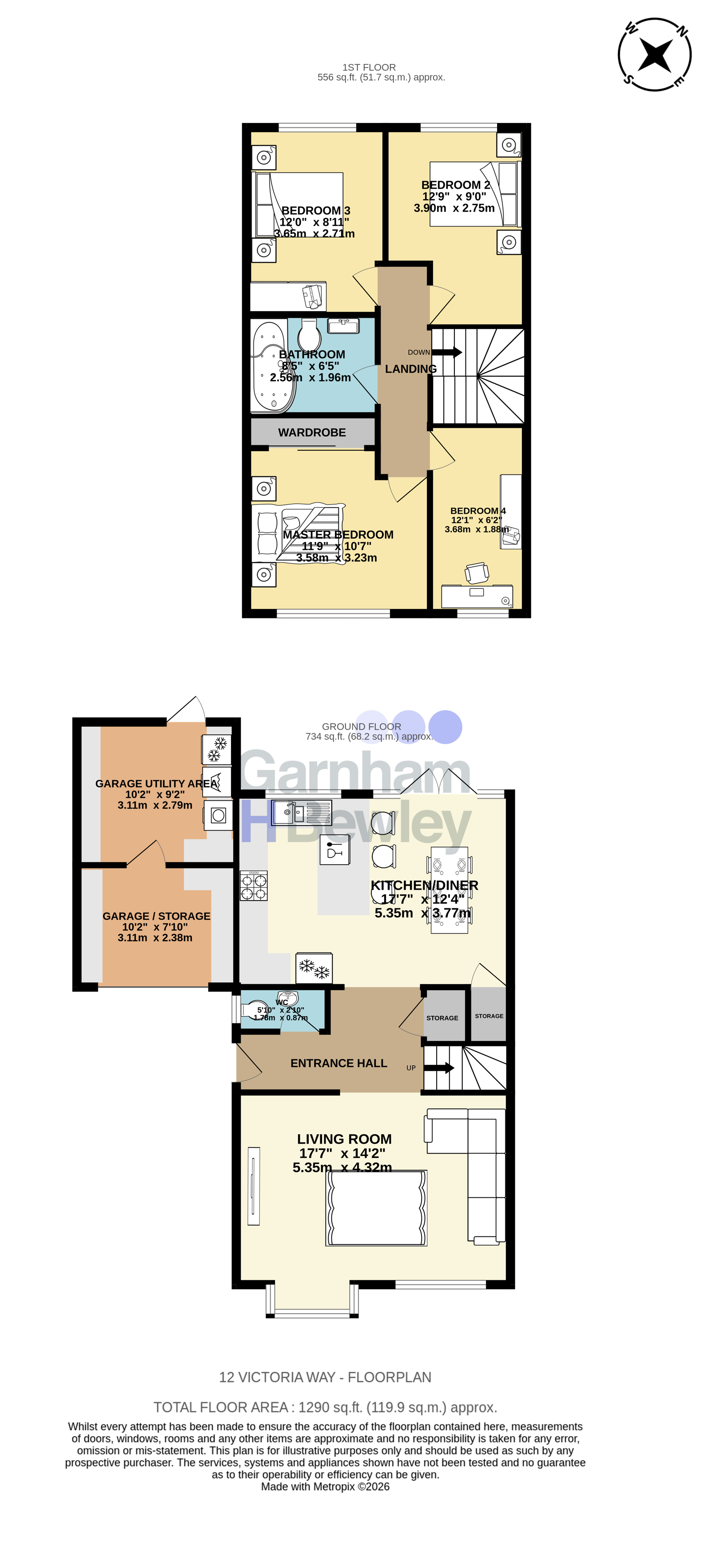 The garage itself has been thoughtfully divided to create a useful storage area to the front, with a practical utility area to the rear — ideal for laundry and additional household appliances. To the front of the property there is driveway parking, adding further convenience for family living.