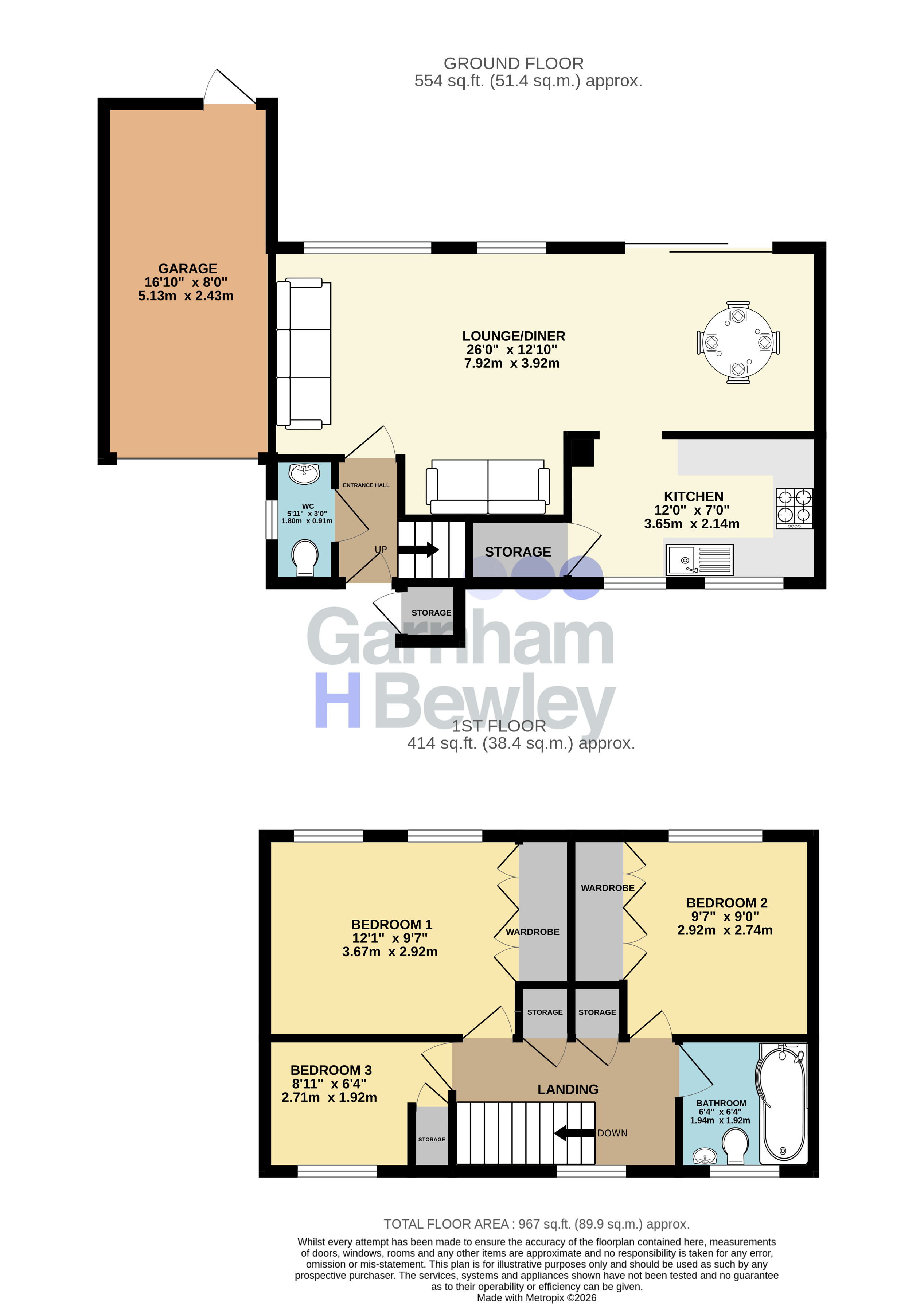 The ground floor accommodation begins with an entrance hall with a convenient cloakroom/WC and useful storage. To the rear of the property is a generous lounge/diner, providing a bright and versatile living space ideal for both everyday living and entertaining, with views over and access out to the rear garden. The kitchen is positioned to the front of the property and offers a functional layout, with plenty of scope for updating or reconfiguring to suit modern lifestyles.